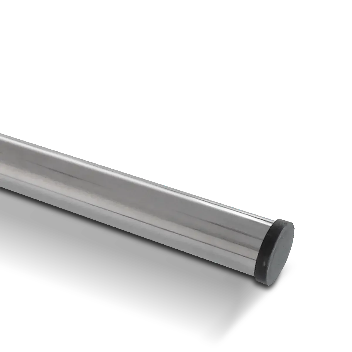 Baranda recta Vulcano. Fabricada de acero inoxidable, tiene una longitud de 120 cm, diámetro de ø38,1 mm y está provista de regatones de PVC en sus extremos. Su delicado diseño y terminación pulida brillante permite a los bañistas realizar movimientos cómodos y seguros dentro de la piscina.