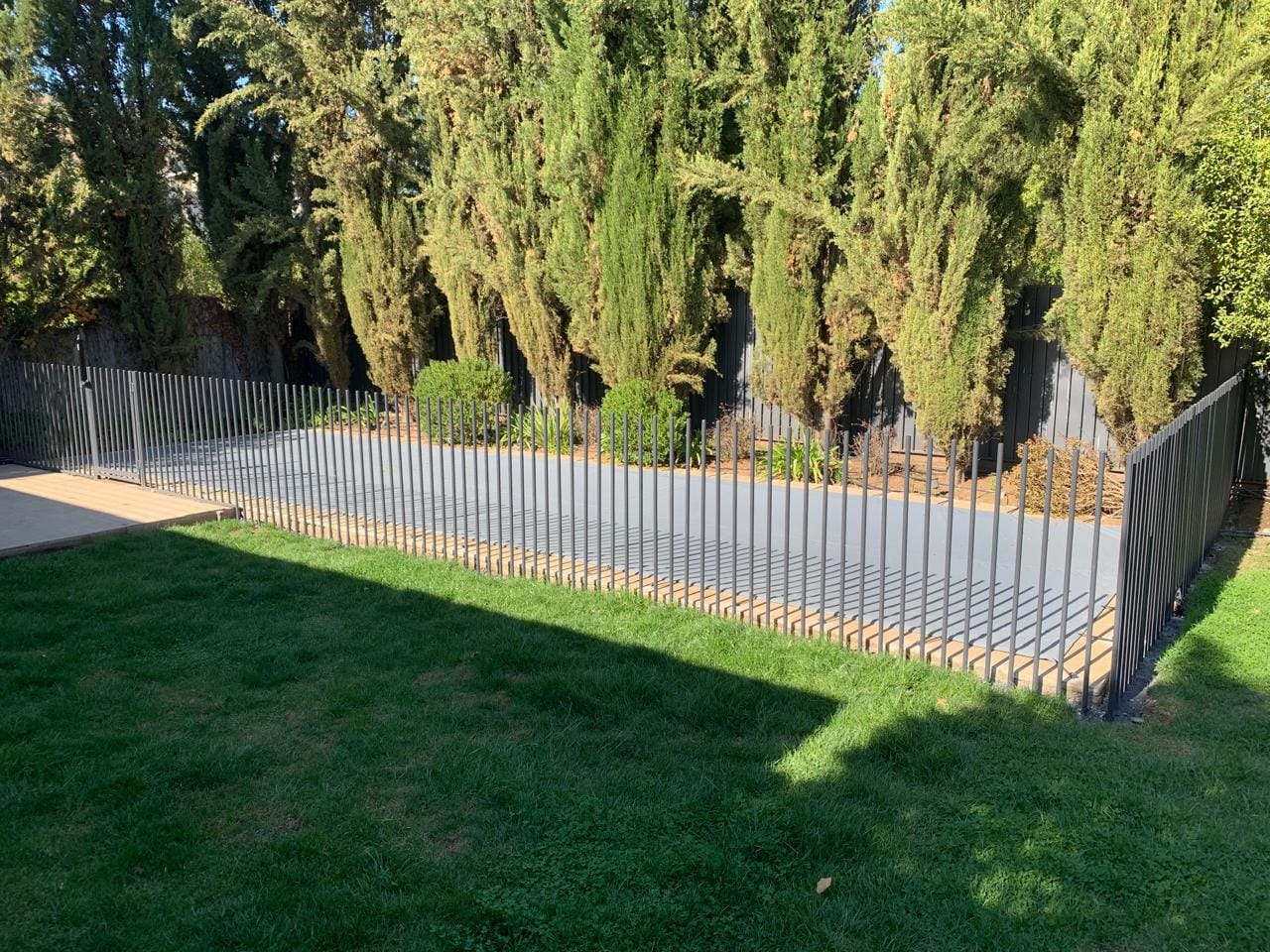 Cobertor de seguridad para piscina en PVC de alta resistencia (650 g/m²). Protege a niños y mascotas, evita suciedad y pérdida de temperatura, soporta hasta 120 kg y cuenta con protección UV. Fabricado a medida, incluye kit de fijaciones y despacho a todo Chile.