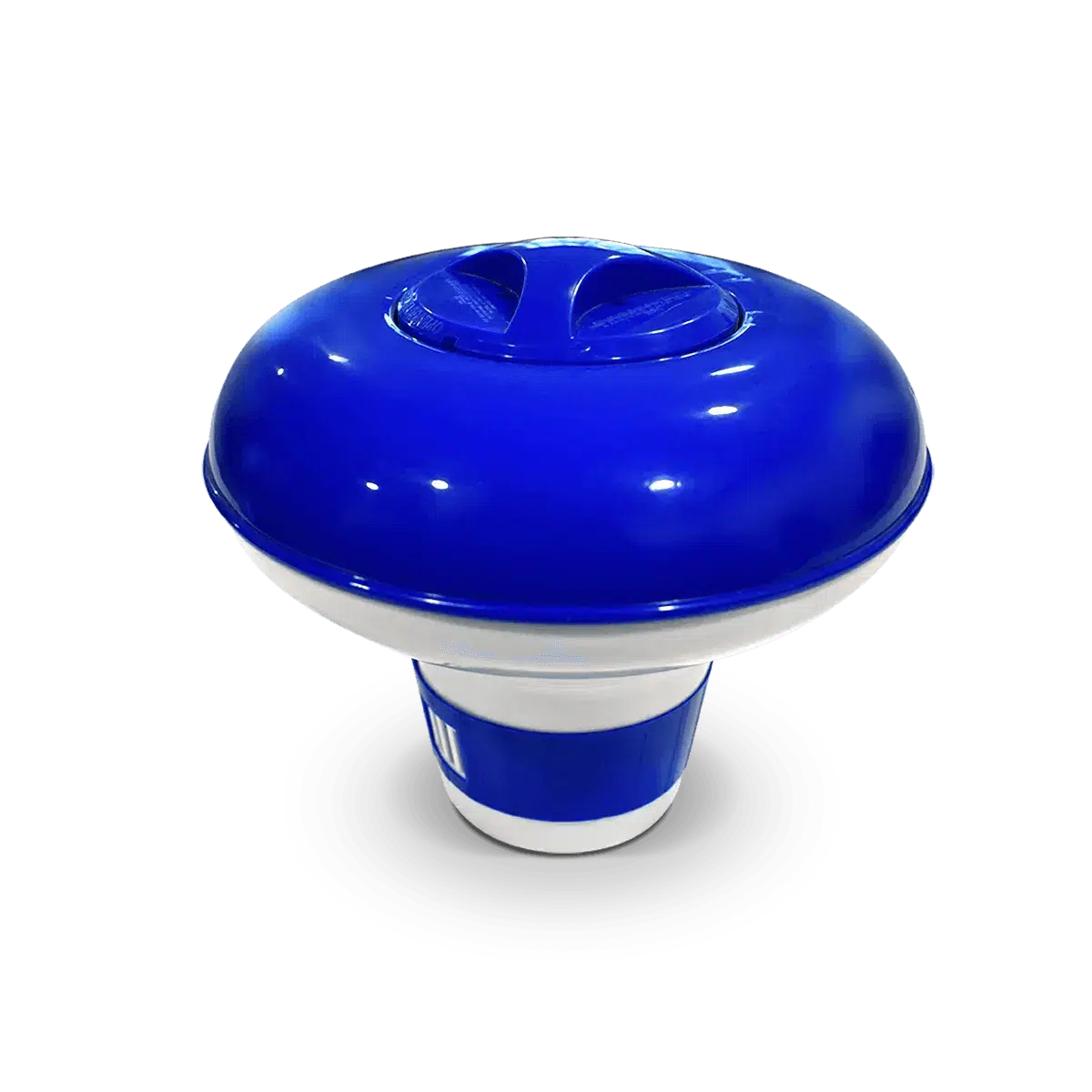 Boya dosificadora de cloro Vulcano modelo Max, para pastillas de 50 y 200 g. La boya dosificadora flota sobre la superficie de la piscina conteniendo pastillas de cloro de disolución lenta o triple acción que, al al entrar en contacto con el agua, se disuelven lentamente.