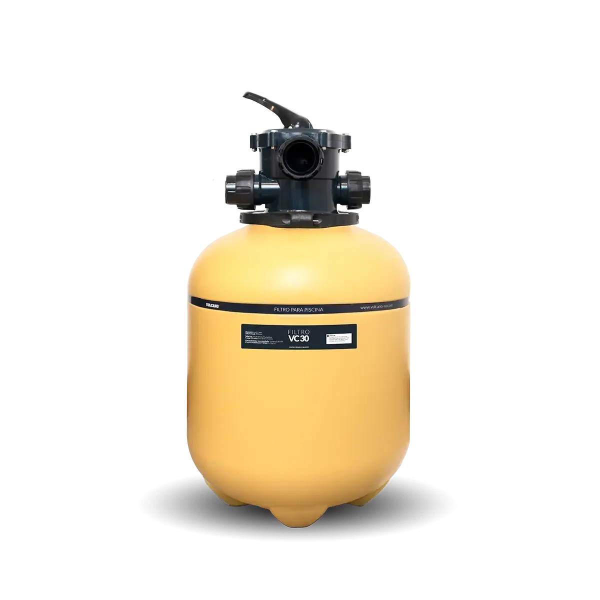 Filtro VC-30 Vulcano de ø440 mm para piscinas de hasta 50.000 litros. Diseñado para eliminar las impurezas (mayores a 20 µ) que llegan al agua por medio del viento, lluvia o el uso. Fabricado por soplado en una sola pieza con materiales de alta resistencia a la corrosión, este equipo garantiza una larga vida útil con óptimo funcionamiento.