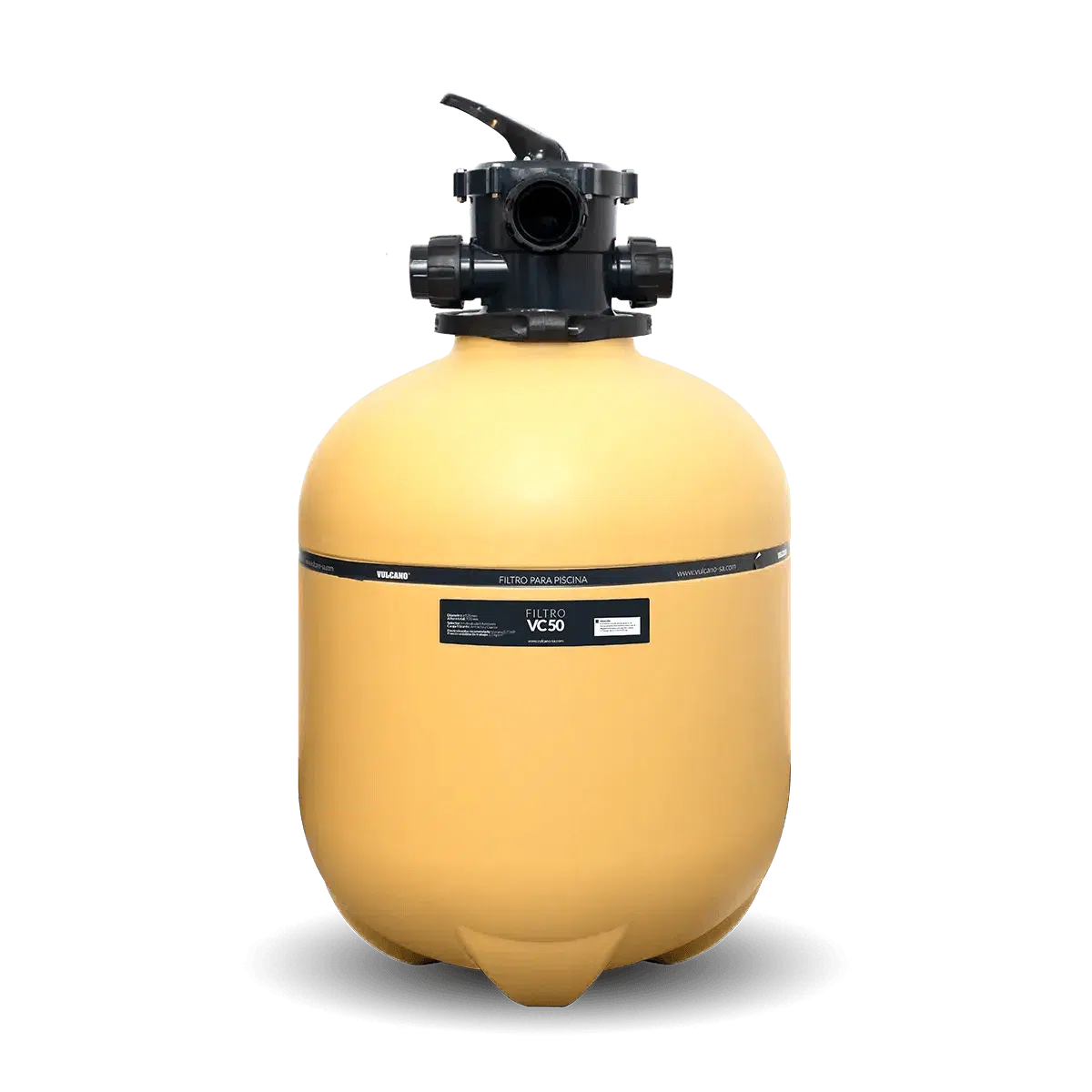 Filtro VC-50 Vulcano de ø540 mm para piscinas de hasta 80.000 litros. Diseñado para eliminar las impurezas (mayores a 20 µ) que llegan al agua por medio del viento, lluvia o el uso. Fabricado por soplado en una sola pieza con materiales de alta resistencia a la corrosión, este equipo garantiza una larga vida útil con óptimo funcionamiento.