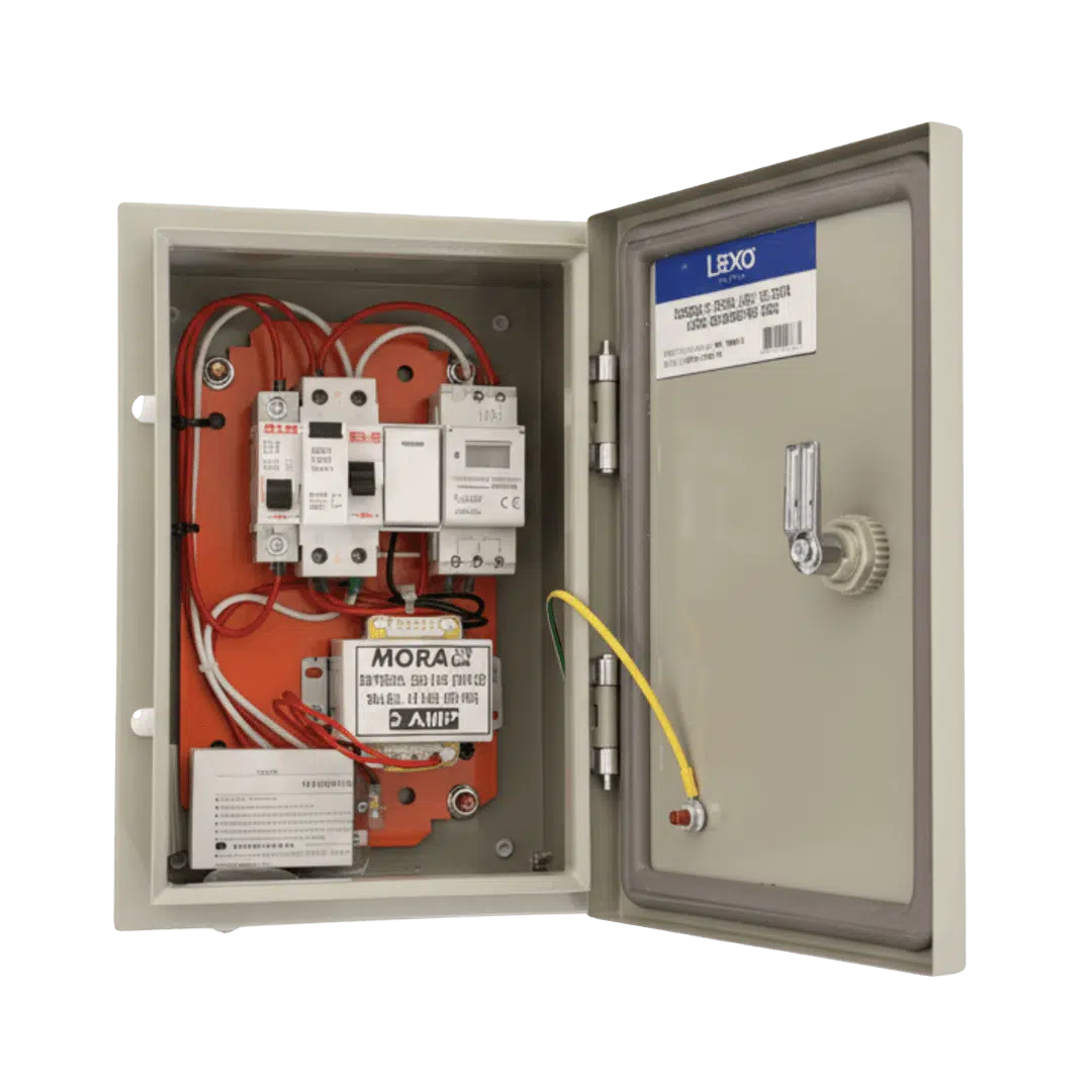 Tablero eléctrico metálico Lexo diseñado para el control y protección de bombas e iluminación de piscinas. Equipado con temporizador digital programable, permite automatizar el encendido y apagado de los equipos con total precisión. Su gabinete metálico IP65 garantiza máxima resistencia al polvo, la humedad y las condiciones exteriores.